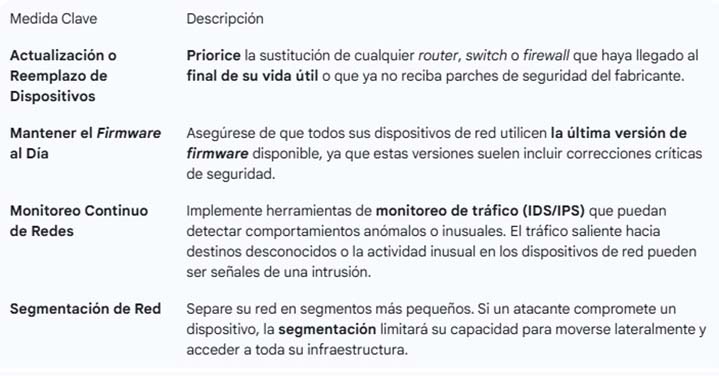 El riesgo principal reside en los dispositivos que ya no reciben actualizaciones de seguridad o parches por parte del fabricante. Los routers, switches y firewalls antiguos a menudo contienen vulnerabilidades conocidas que, al ser de dominio público, son explotadas rutinariamente por atacantes.